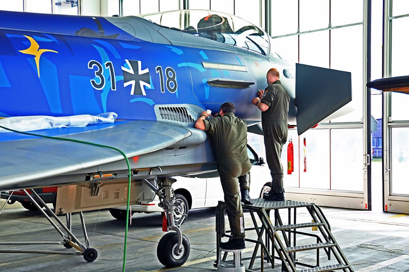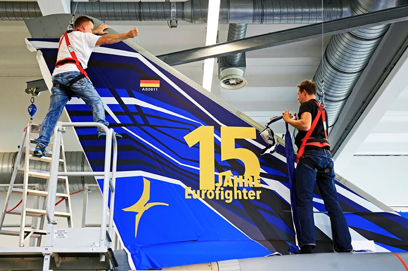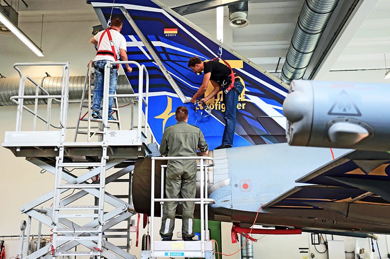Arbeitsvorbereitung (Anpassung der 2D-Designvorlage an 3D-Form des Eurofighter, Erstellung der Druckvorlagen für den Digitaldruck): Neonlicht GmbH Bargeshagen